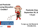 Pesticide Continued Education Credit September 26, 2024, 1:00 - 5:00 p.m.To sign up for the Pesticide class contactWanda Hargrove, email wanda_hargrove@ncsu.edu or call 910.296.2143